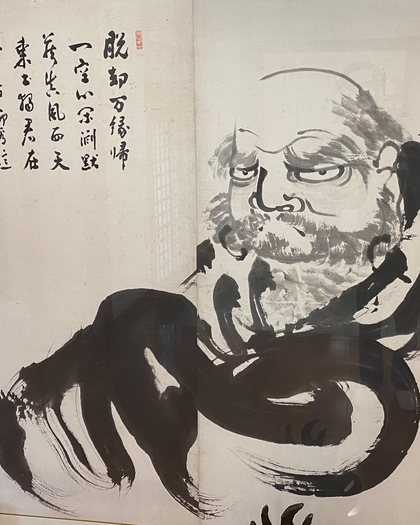 永源寺にも、一時住み込み、その際に描いたとされる達磨絵図が数枚残されており、その内の2枚には、時の清水寺の貫主である大西良慶老師直筆の賛が書かれている。
