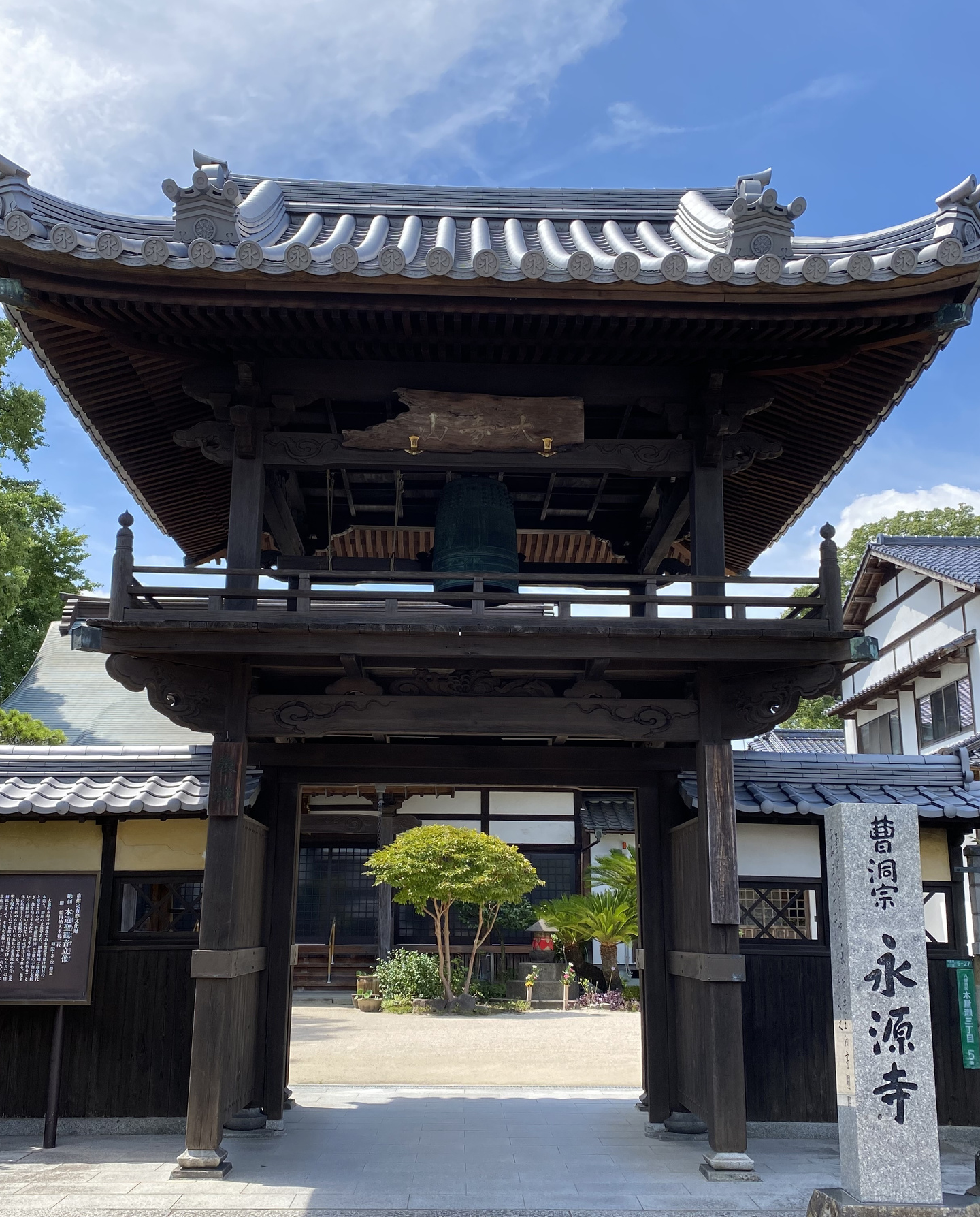 また、山門の上部には梵鐘があり、毎朝6時と夕方5時に9声の梵鐘の音が、木屋瀬の町に響き渡っている。